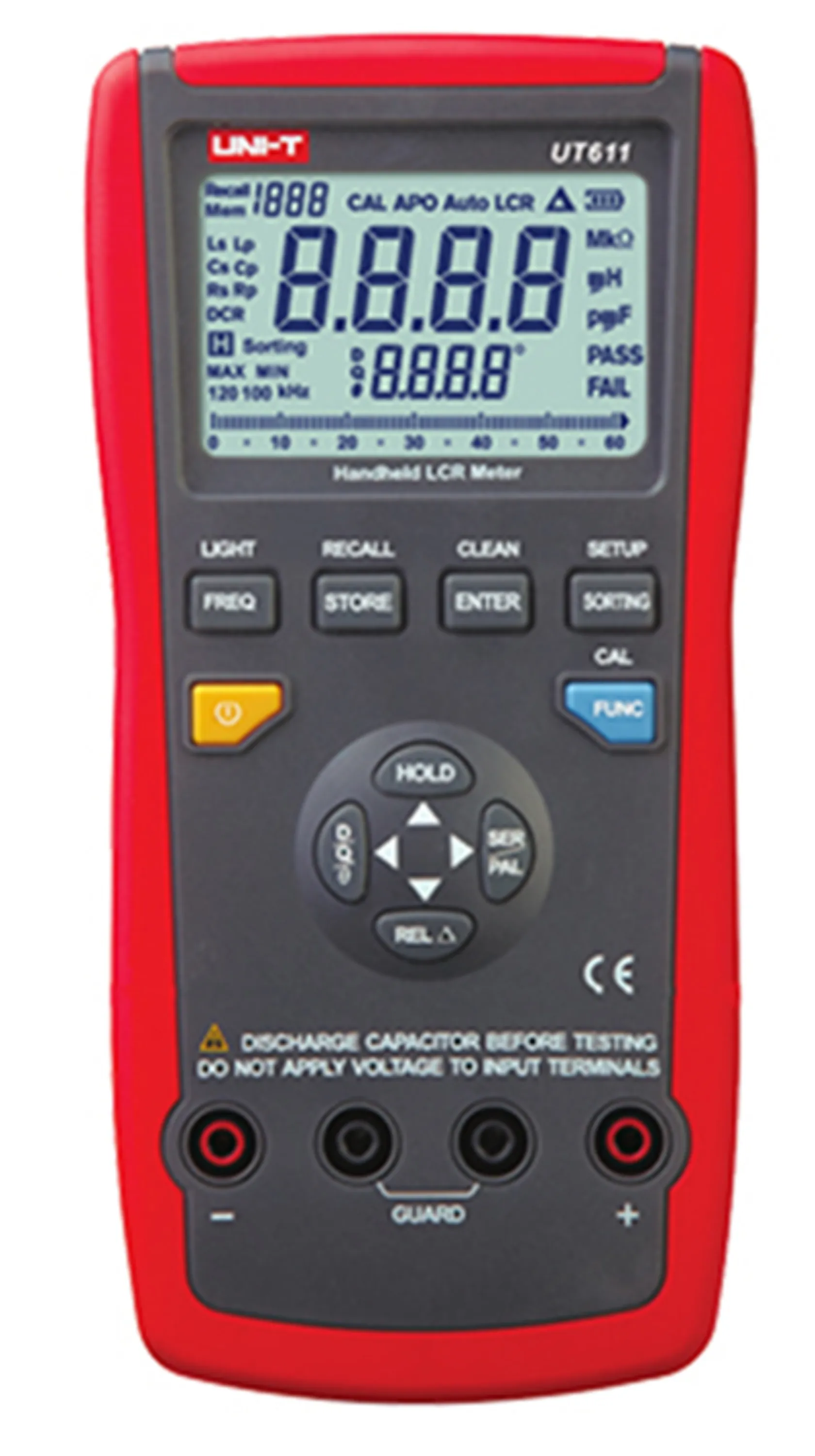 UT611 یک آنالایزر LCR دیجیتال از برند UniTrend (UT) است که برای اندازهگیری ویژگیهای الکتریکی قطعات الکترونیکی بهویژه مقاومت (R)، ظرفیت خازن (C)، اندوکتانس (L)، ضریب کیفیت (Q)، ضریب اتلاف (D) و سایر پارامترهای الکتریکی طراحی شده است. این دستگاه یکی از ابزارهای پرکاربرد در آزمایشگاههای الکترونیکی، تعمیرات و تستهای کنترل کیفیت قطعات است. طراحی آن بهگونهای است که برای اندازهگیری قطعات مختلف الکترونیکی در محیطهای صنعتی و آزمایشگاهی بسیار مناسب است.
