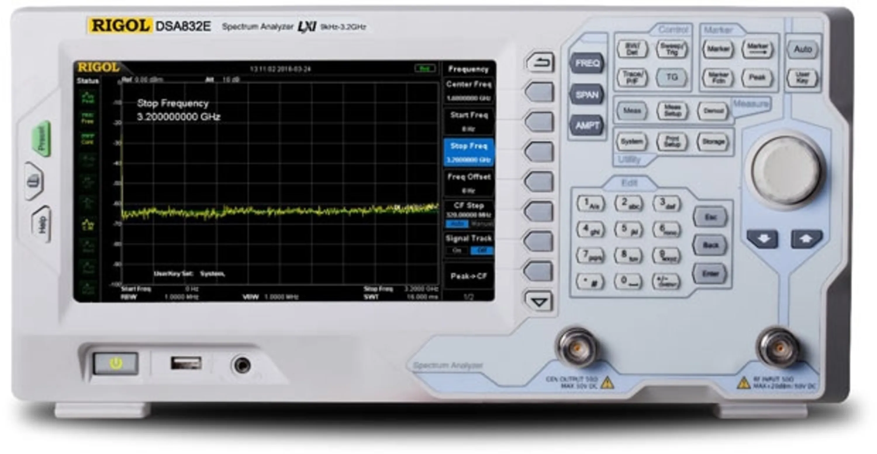 اسپکتروم آنالایزرهای سری DSA800 Rigol با تعیین استانداردهای جدید با عملکردبسیار دقیق و حساس از شرکت ریگول ارائه شده است. خانواده DSA800 دارای صفحه نمایش عریض، طراحی جمع و جور، و رابط کاربری آسان است که آن را برای برنامه های رومیزی یا میدانی در تست و تولید امواج RF و بی سیم ایده آل می کند. اسپکتروم آنالایزر DSA832E-TG توانایی اندازهگیری سیگنالهای کوچکتر را با استفاده از فیلتر IF دیجیتال به ما ارائه میدهد، که امکان تنظیمات پهنای باند کوچکتر را فراهم میکند و سطوح نویز نمایش داده شده را کاهش میدهد. بین سیگنال هایی با اختلاف فرکانس کمتر از 10 هرتز تمایز قائل می شود. از این دستگاه می توان در اندازه گیری EMC مطابق با پراب EMI استفاده کرد. حضور آپشن تراکینگ ژنراتور و پری آمپلی فایر در این دستگاه موجب فرآهم کردن امکان جهت اندازه گیری VSWR می شود. شما می توانید اطلاعات فنی کاملتری را در پایین این صفحه در وب سایت شاهکار الکترونیک مطالعه بفرمائید.