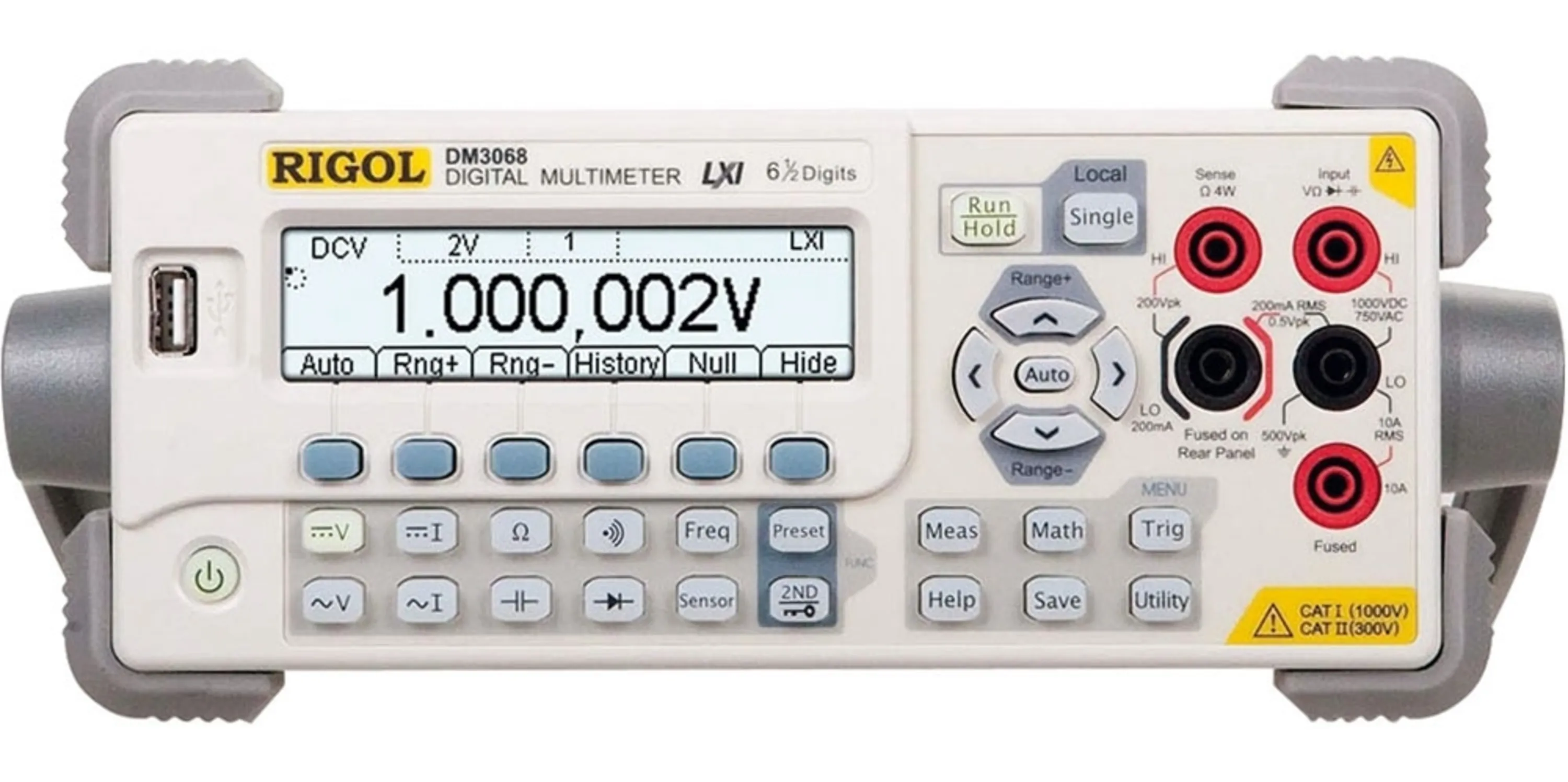 مولتی متر رومیزی 6.5 رقمی مدل DM3068 ساخت RIGOL می باشد. مولتی مترهای سری DM3000 قابلیت های بسیار زیادی دارند. اولاً مقادیر اندازه گیری شده قابل اعتمادی دارند، دوماً مقرون به صرفه هستند سوماً اندازه گیری های DCV، ACV، DCI، ACI، مقاومت (2 و 4 سیم)، ظرفیت خازن، تست دیود، فرکانس و دما را با دقت بالا ارائه می دهند. دراین دیجیتال مولتی مترها یک LCD ساده و کارآمد جهت سهولت کار طراحی شده، اما این دستگاه شامل گزینه های نرم افزاری برای ثبت اطلاعات و برنامه نویسی می باشد. جهت خرید این دستگاه از طریق همین صفحه از شرکت شاهکار الکترونیک خرید نمائید.