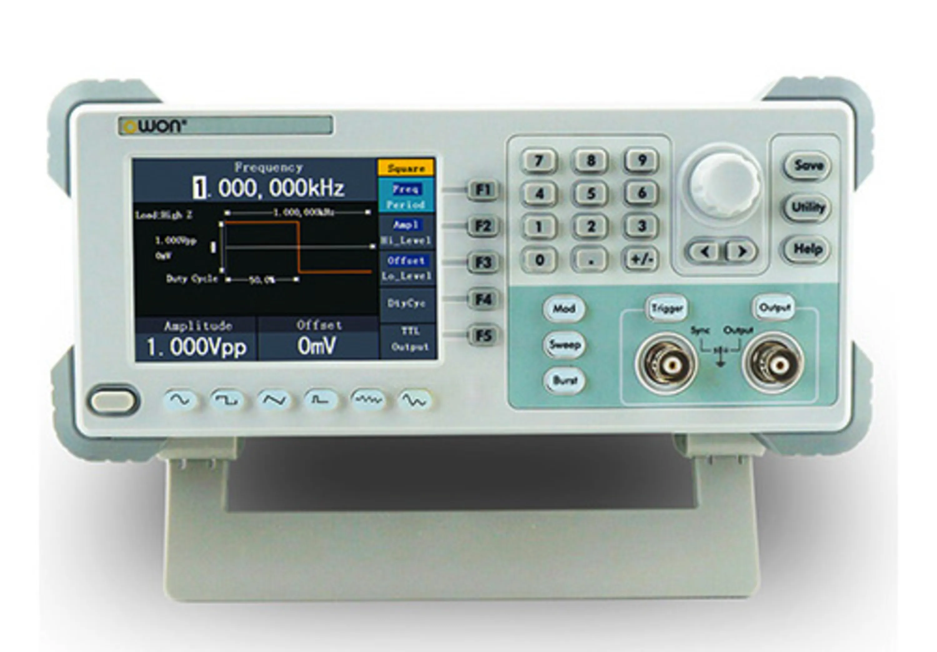 بررسی تخصصیسوئیپ فانکشن ژنراتور 5 مگاهرتز مدل AG-051F ساخت کمپانی OWON هنگ کنگمحدوده اندازه گیری 1µHz ~ 5MHz دیجیتالمحدوده دامنه 1mVp-p ~25Vp-p تک کانالمدولاسیون AM, FM, PM, FSK, Sweep, Burstسرعت نمونه برداری 125 MS/s با دقت 14 bitقابلیت اتصال به کامپیوتر با پورت USB2 نوع شکل موجصفحه نمایش رنگی 4 اینچیتولید شکل موج های سینوسی، مربعی ، مثلثی و شکل موج دلخواهتولید Noise