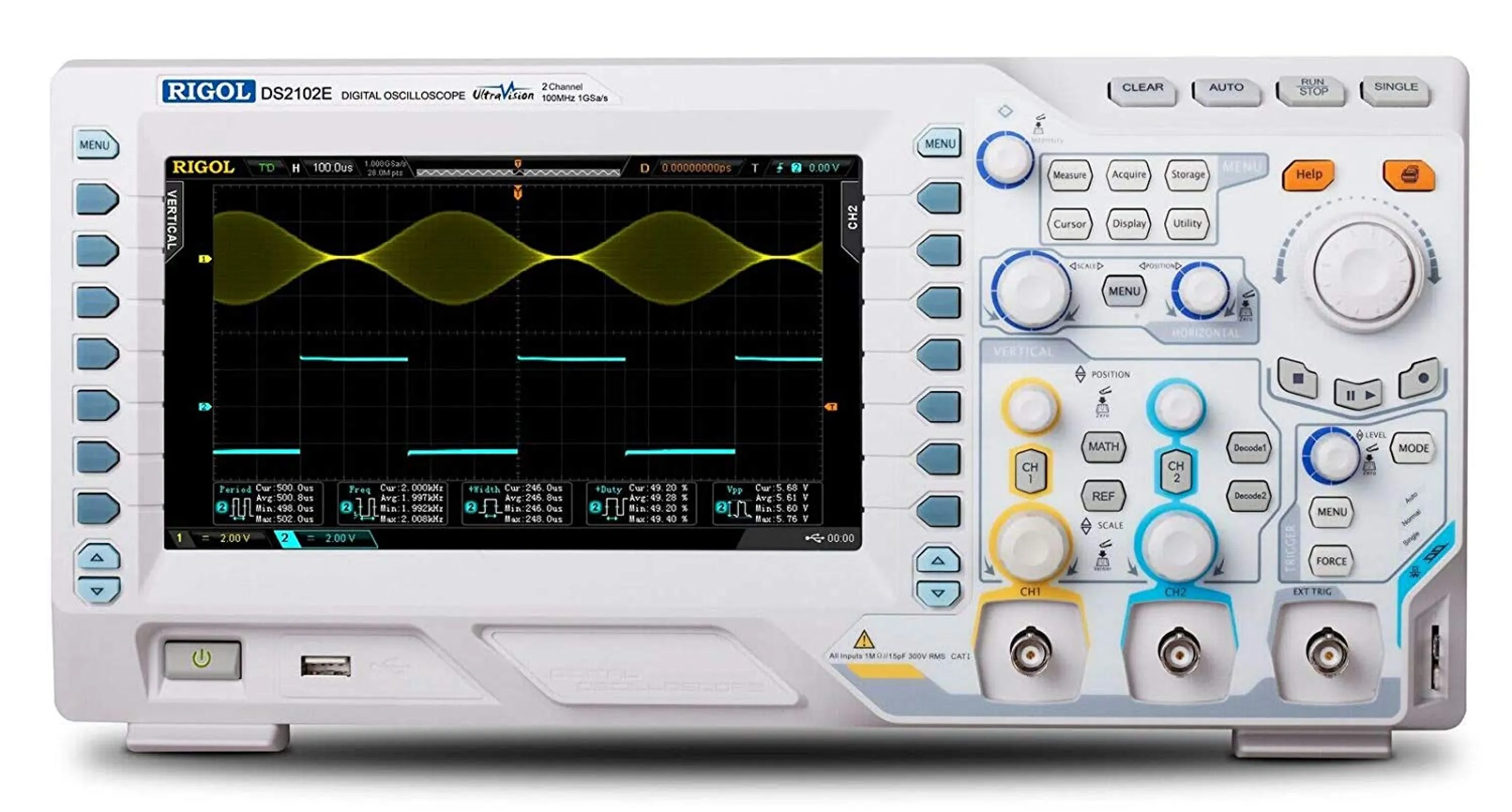 اسیلوسکوپ DS2102E فرکانس 100 مگاهرتز 2 کاناله دیجیتال حافظه دار سری DS2000 شرکت ریگول می باشد. این سری از اسیلوسکوپ های شرکت ریگول گزینه مناسبی جهت ذخیره سازی راحت سیگنال های دریافتی می باشند.