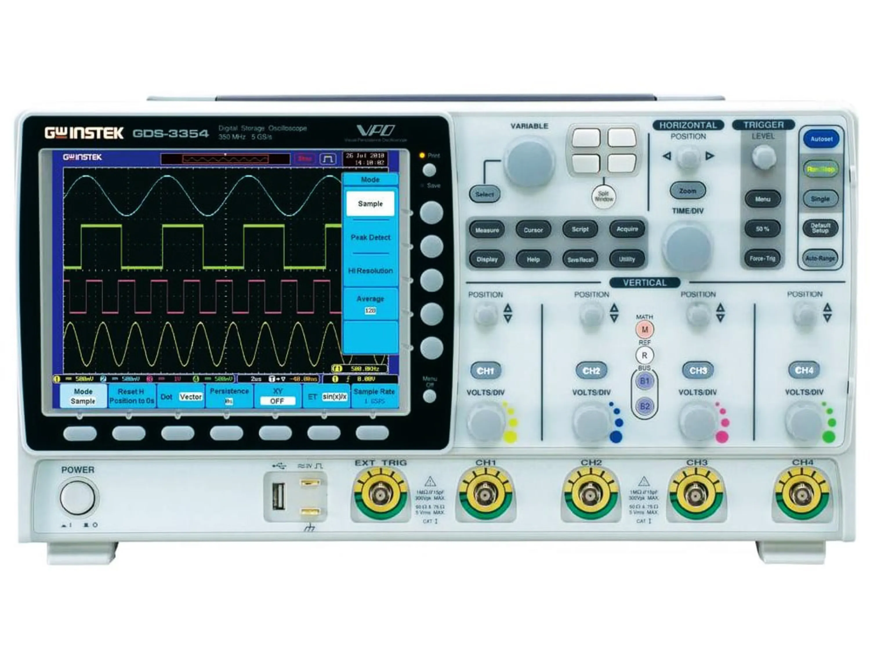 اسیلوسکوپ GDS3354 ساخت GW Instek تایوان یکی از قدرتمند ترین و دقیق ترین اسیلوسکوپ ساخته شده در شرکت گودویل می باشد. این دستگاه یکی از شاهکارهای شرکت gw instek می باشد هم از لحاظ سرعت نمونه برداری که 5 گیگ سمپل در ثانیه می باشد و هم فناوری vpo و Ultra Low noice بودن آن. اگر به دنبال دستگاه اسیلوسکوپ با فرکانس 350MHz هستید و دقت اندازه گیری برایتان اهمیت ویژه ایی دارد این دستگاه 4 کاناله بهترین گزینه می باشد.