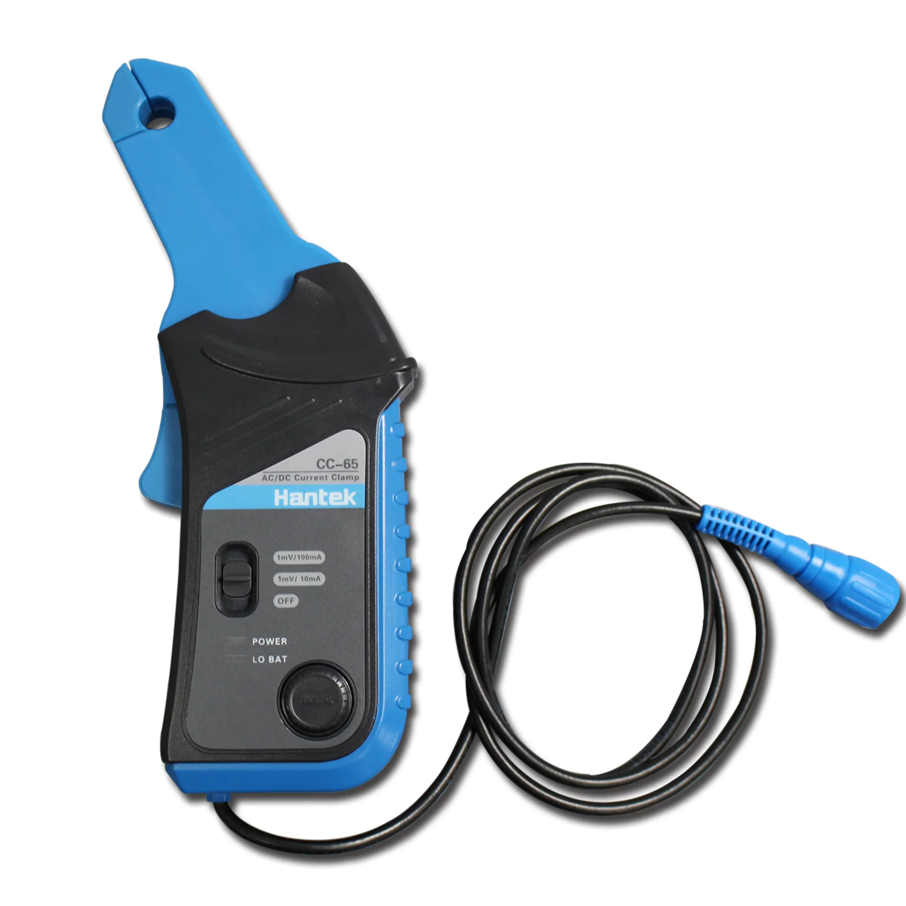 پراب جریان اسیلوسکوپ مدل CC-65 ساخت هانتک چین جهت اندازه گیری جریان سیم و .. که به صورت کلمپی ساخته شده و می تواند بر اساس فرمول V=RI مقدار جریان را محاسبه و در اسیلوسکوپ نمایش دهد. ماکزیمم جریان این پراب کلمپی 65 آمپر برای AC و DC می باشد.