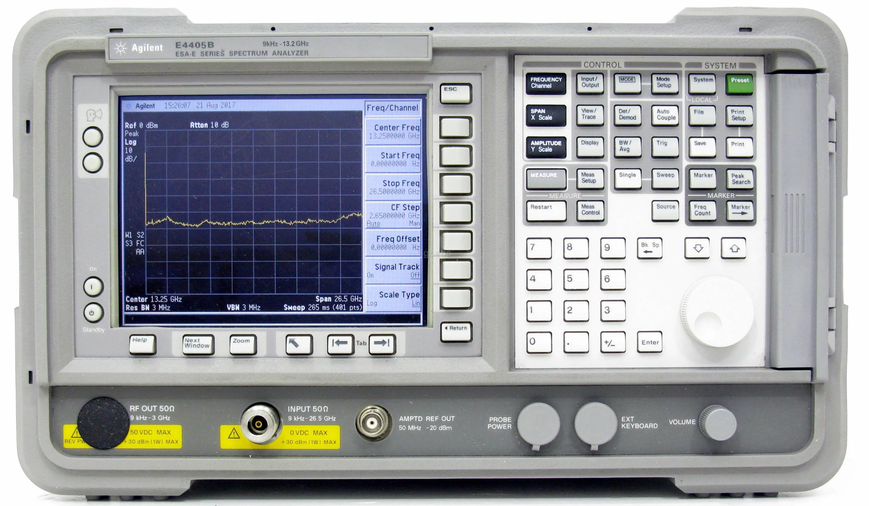 یک دستگاه اندازهگیری و تحلیل سیگنالهای فرکانسی است که توسط شرکت Agilent Technologies اکنون Keysight Technologies تولید میشود. این دستگاه به ویژه در صنایع مخابراتی، و تحقیقاتی برای تحلیل طیف فرکانسی سیگنالها و شناسایی منابع نویز و تداخلات استفاده میشود. برخی از ویژگیها و مشخصات اسپکتروم آنالایزر E4405B عبارتند از: